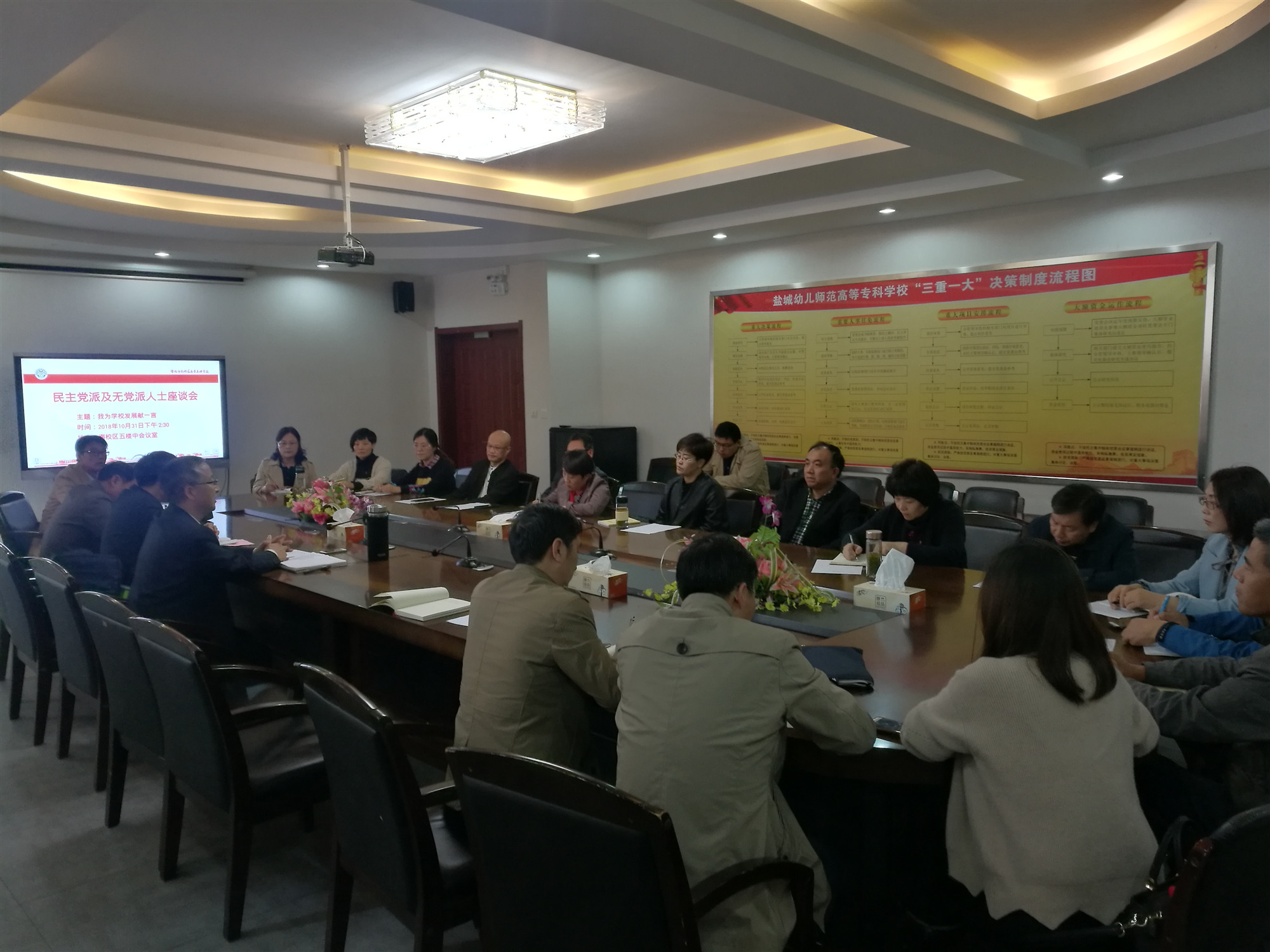 2018年10月31日,我校在学海路校区五楼中会议室举行民主党派及无党派人士座谈会。座谈会由校领导马力主持。