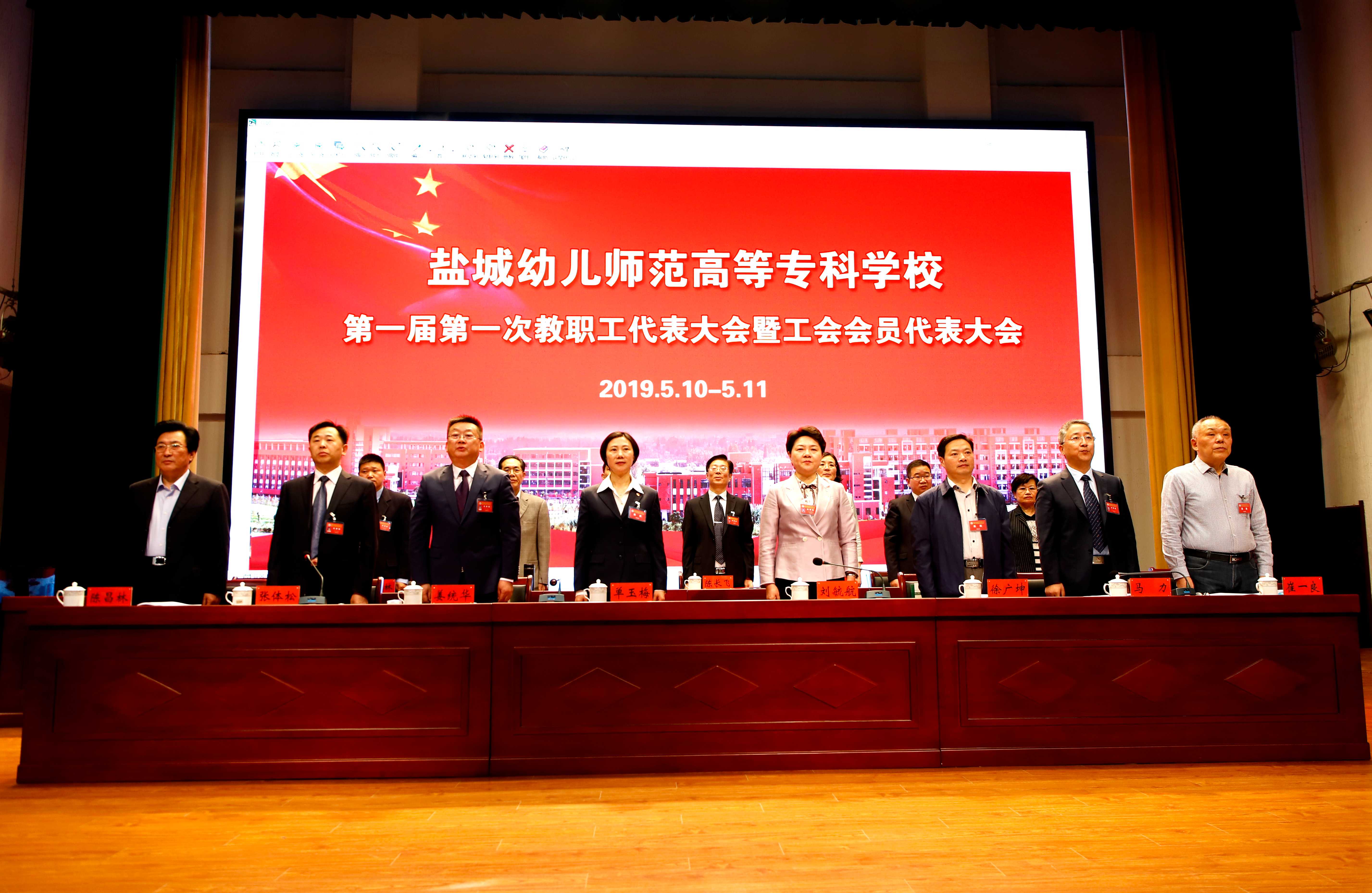 5月11日上午,我校第一届教代会暨工代会第一次会议开幕式及第一次全体代表会议在学海路校区学术报告厅举行。大会开幕式由校党委副书记、副校长张体松主持。盐城市总工会领导单玉梅、徐广坤及特邀代表,校领导班子全体成员,学校老领导陈昌林、崔一良、施根宽等,教代会代表、列席代表和部分师生出席了开幕式。