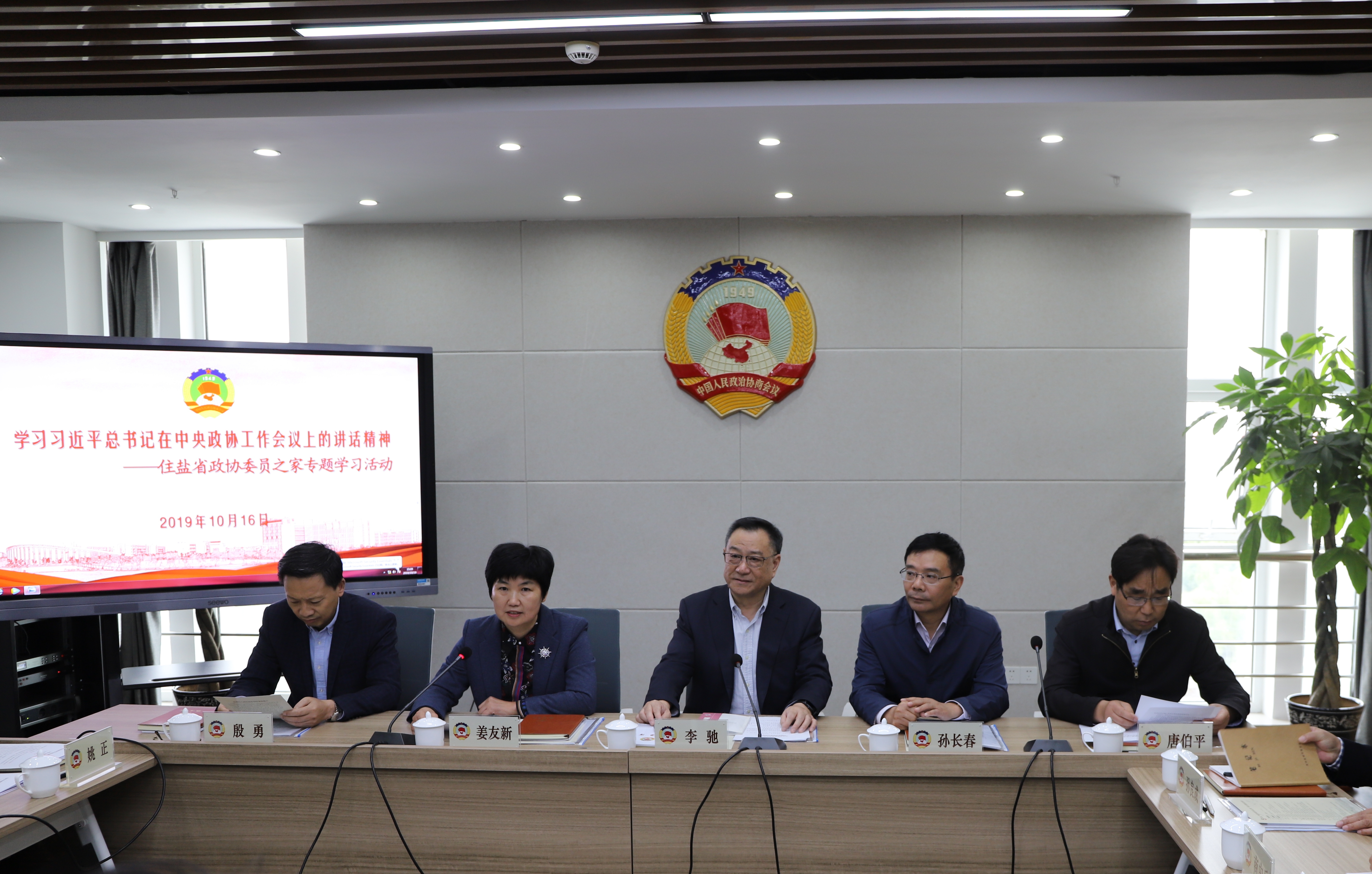在住盐省政协委员的集中学习会上,刘毓航书记首先介绍了我校历史概况及学校升专以来的发展情况,重点介绍学校的四大专业群建设及五大文化发展愿景,刘书记还介绍“省政协委员之家”筹备建设情况。