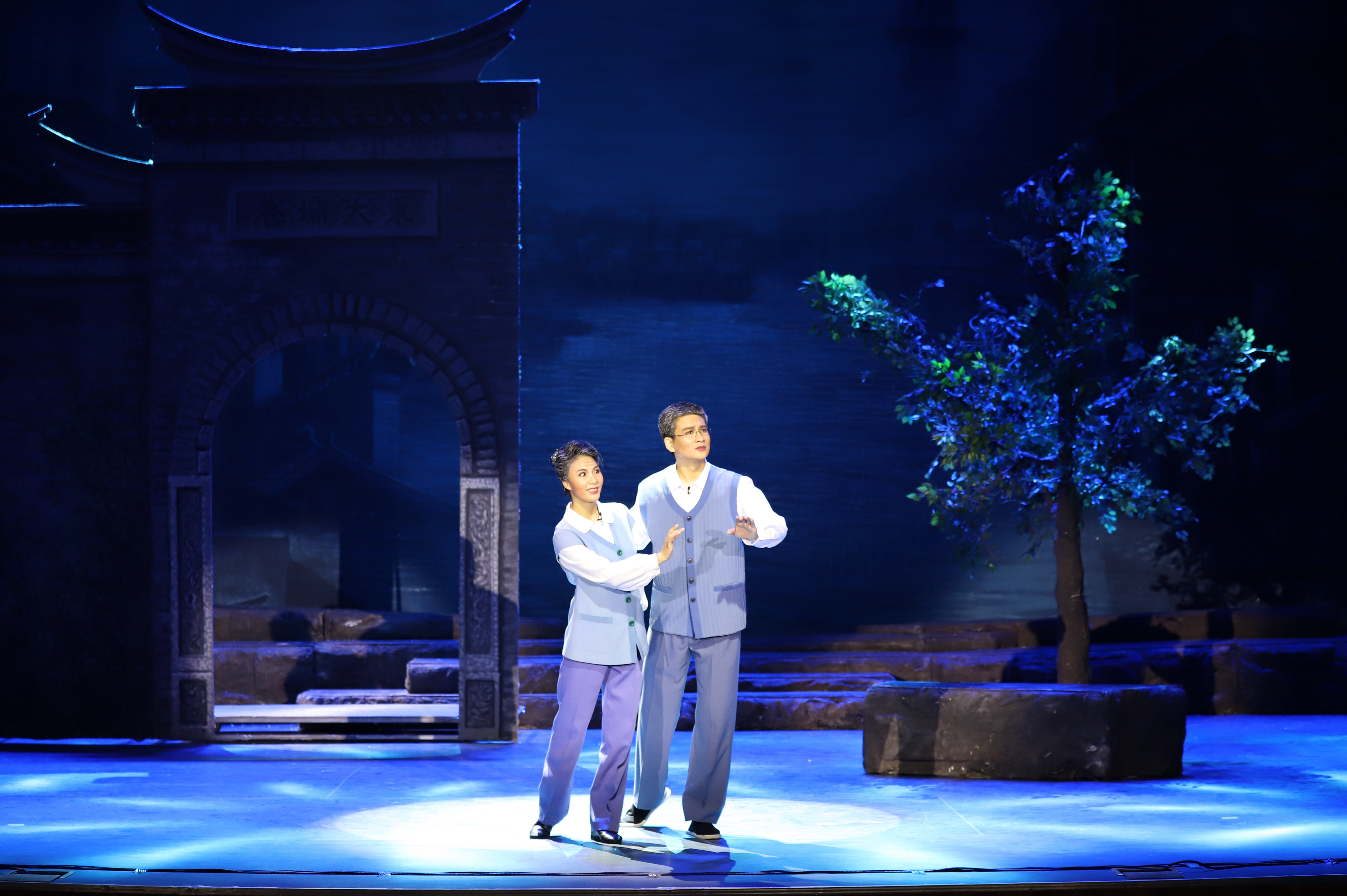 第一场和第二场担纲主演的朱文轩扮演者陈明矿、小妹扮演者陈澄是盐城幼儿师范高等专科学校前身盐城鲁迅艺术学校淮剧专业毕业生,他们从昔日鲁艺的小舞台走上了艺术的大舞台,是全国淮剧表演梅花奖、白玉兰得主。值得一提的是29日晚担纲倾情主演《小镇》的是我校2008级淮剧专业毕业生。我校作为淮剧表演人才培养的摇篮,非物质文化传承基地培养了一批又一批优秀的演员活跃在戏曲的舞台上,并涌现了多位梅花奖、白玉兰奖、小梅花奖获得者。