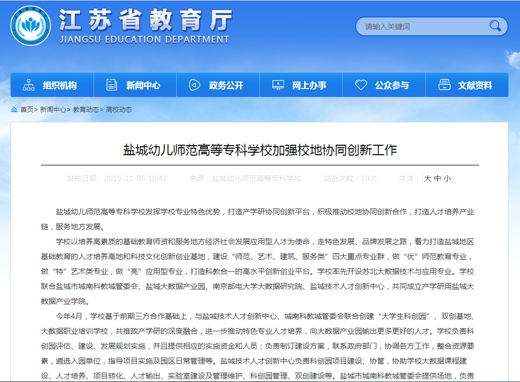 江苏省教育厅官网:盐城幼儿师范高等专科学校加强校地协同创新工作