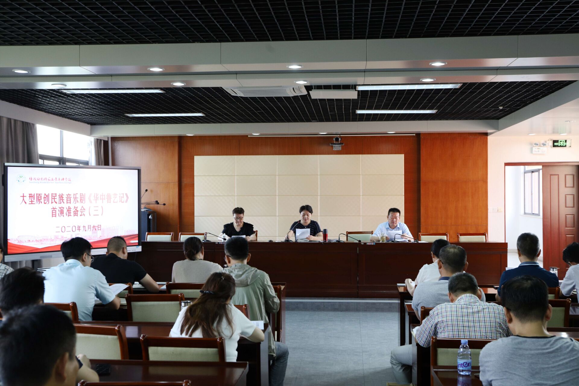 刘荣、鲁凌云两位执行导演就舞台排练、统筹协调等工作作出部署。安保处谢福华处长、团委李鹏书记、鲁艺学院陈德田副院长就安保、学生礼仪、基金论证等工作安排提出了优化建议。