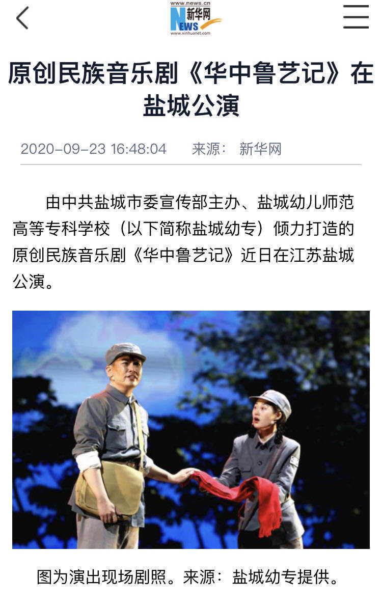 新华网:原创民族音乐剧《华中鲁艺记》在盐城公演