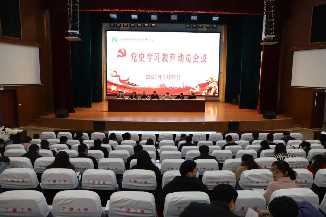 3月22日,我校在海洋路校区召开全校党史学习教育动员大会。党委副书记、校长姜统华作动员讲话,党委副书记、副校长张慧娟,党委委员、纪委书记马力,党委委员、副校长陈长飞,党委委员、副校长崔霞,党委委员、副校长戴永湖,党委委员、宣传部部长葛红梅出席大会,全体中层干部、副科级人员参加大会。大会由张慧娟副书记主持。