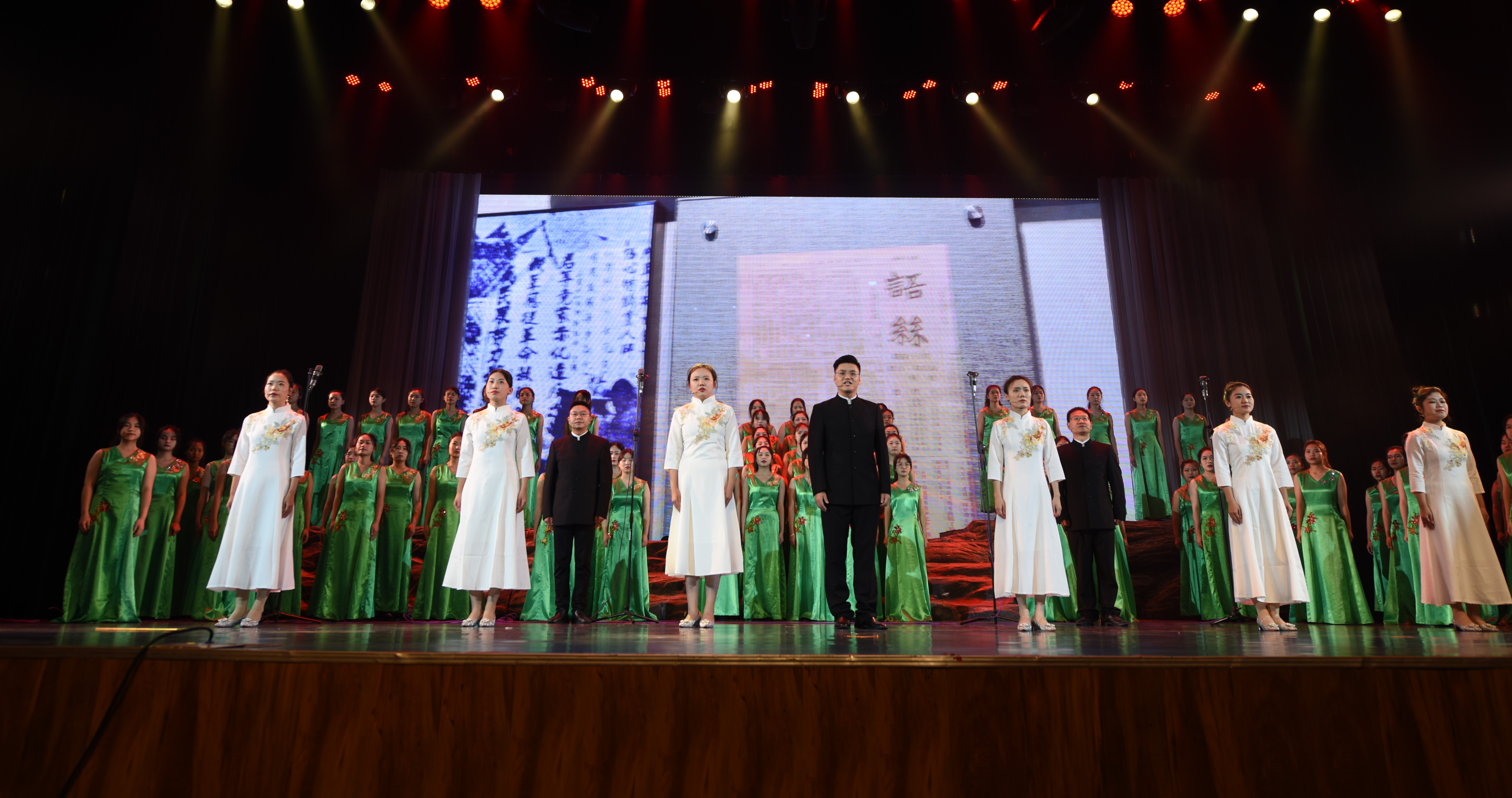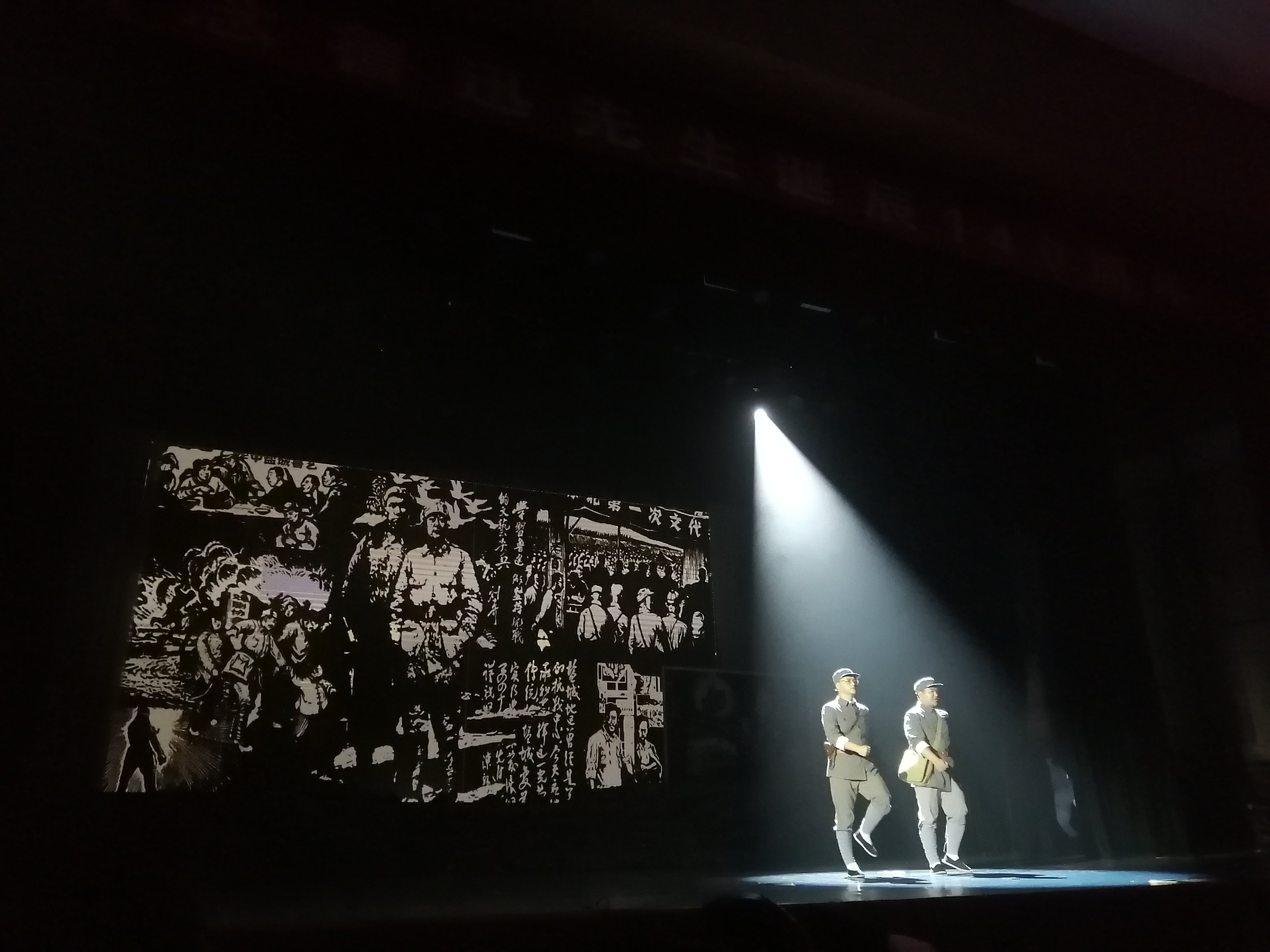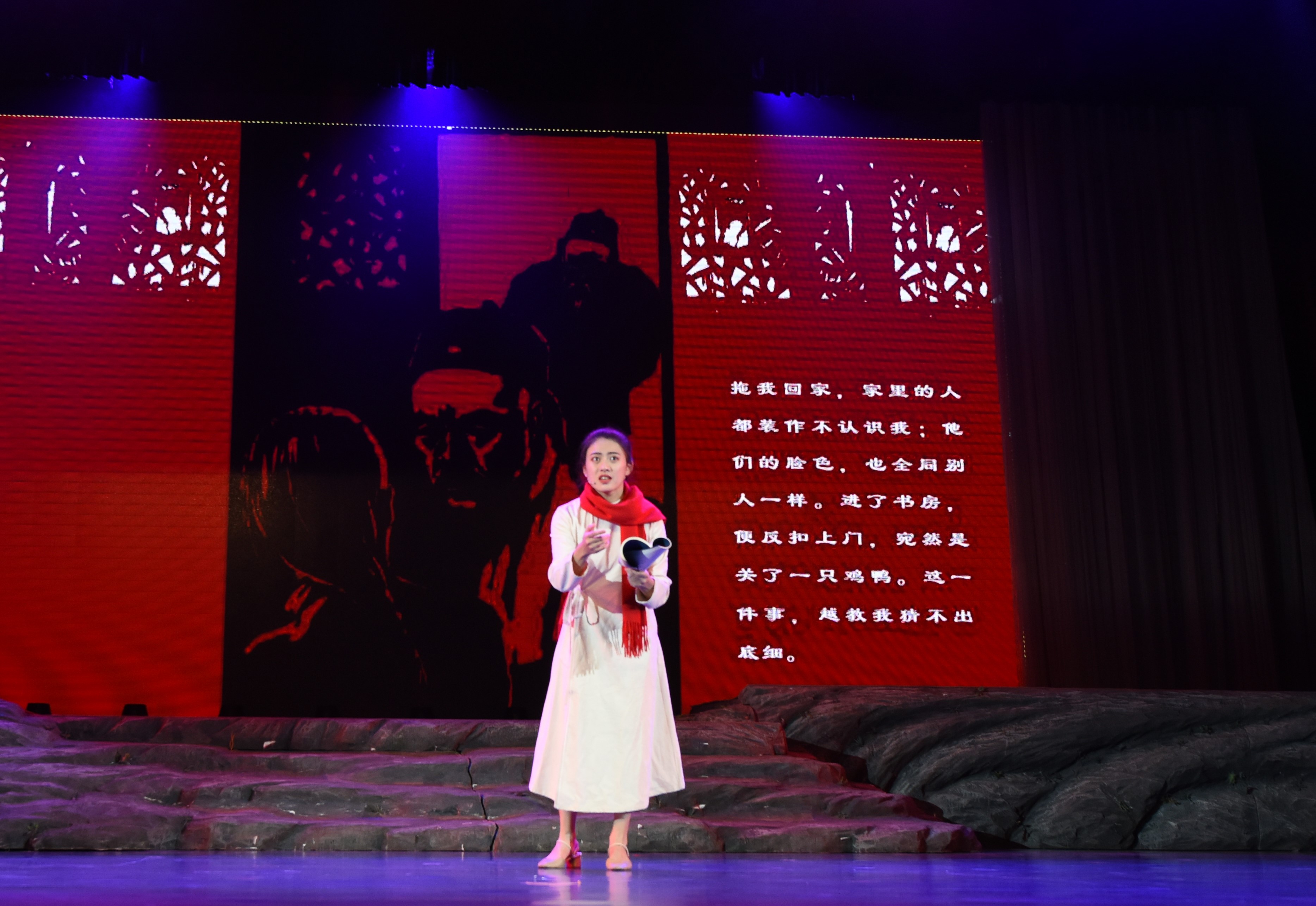 诵读会分为旗手之声、民族魂、鲁迅的方向三个篇章。《狂人日记》、《阿Q正传》、《故乡》、《中国人失掉自信力了吗》……一次次发自内心的呐喊慷慨激昂,一段段细腻温柔的告白饱含深情,一幕幕扣人心弦的画面令人难忘,朗诵、短剧、淮剧、歌唱、书法等多元表演形式,带领在场观众重温鲁迅先生经典作品,走进鲁迅先生的精神世界,感悟先生思想之伟力,致敬先生精神之伟大。