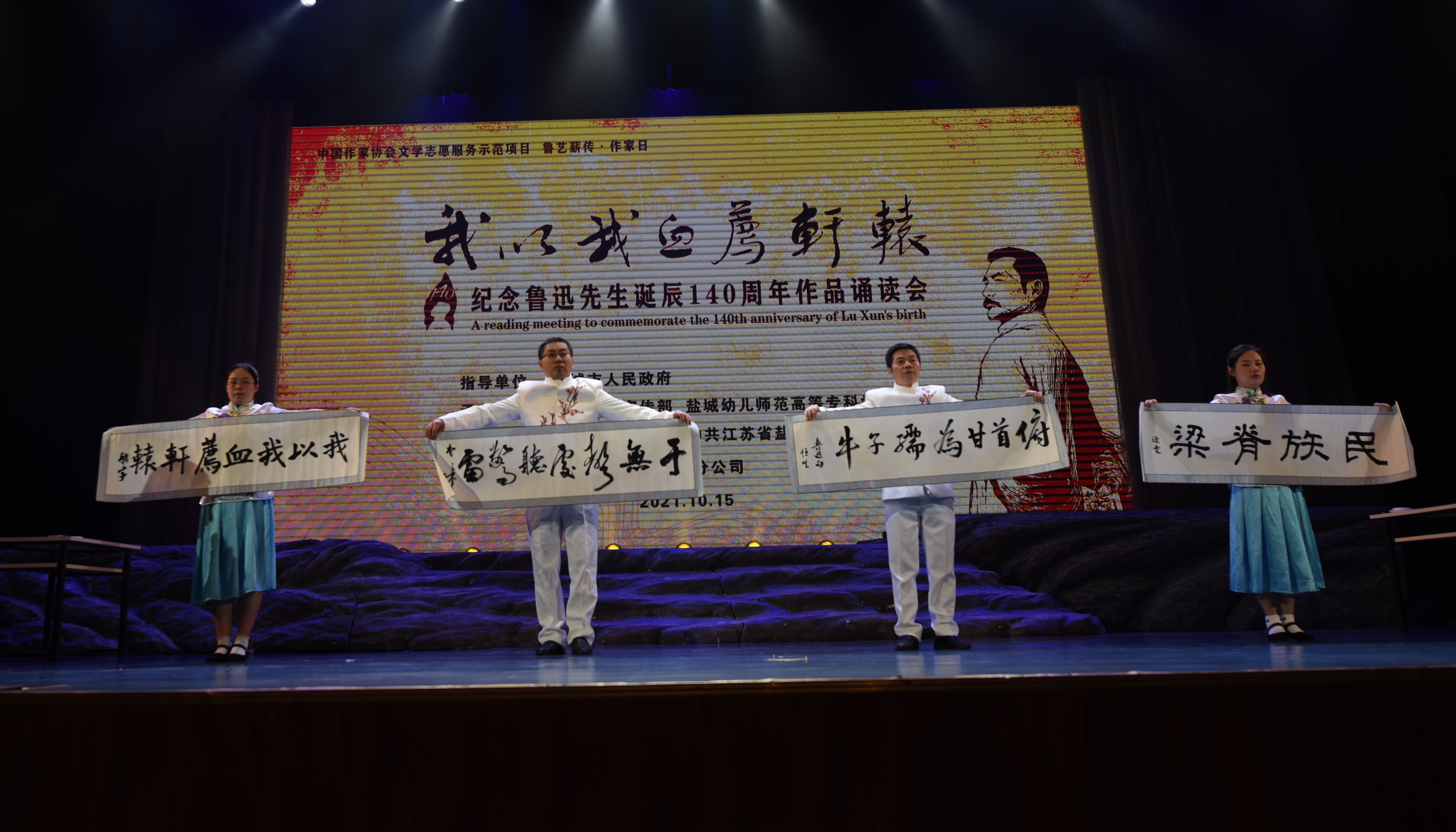 今年是鲁迅先生诞辰140周年、逝世85周年以及华中鲁艺建校80周年,为缅怀鲁迅伟大而不平凡的一生,沈阳、北京、上海、绍兴等地举行了纪念鲁迅先生诞辰140周年系列活动。作为鲁迅艺术学院华中分院的继承学校,10月15日,我校隆重举行“我以我血荐轩辕”——纪念鲁迅先生诞辰140周年系列活动。活动内容丰富,亮点纷呈。既有师生创作的主题作品展,也有鲁迅文化基金会特邀顾问刘国胜教授的学术报告会;既有“声”入人心的作品诵读会,还有我校师生共同演绎的音乐剧《华中鲁艺记》。鲁迅先生之长孙、鲁迅文化基金会会长周令飞亲临指导,盐城市委常委、市委组织部部长费坚出席并讲话,社会各界、延安大学等兄弟院校和新华日报、光明日报、省市电视台、报社等媒体朋友参加活动。