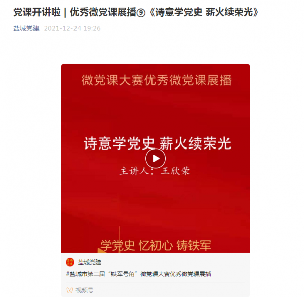 盐城党建:优秀微党课展播⑨《诗意学党史 薪火续荣光》