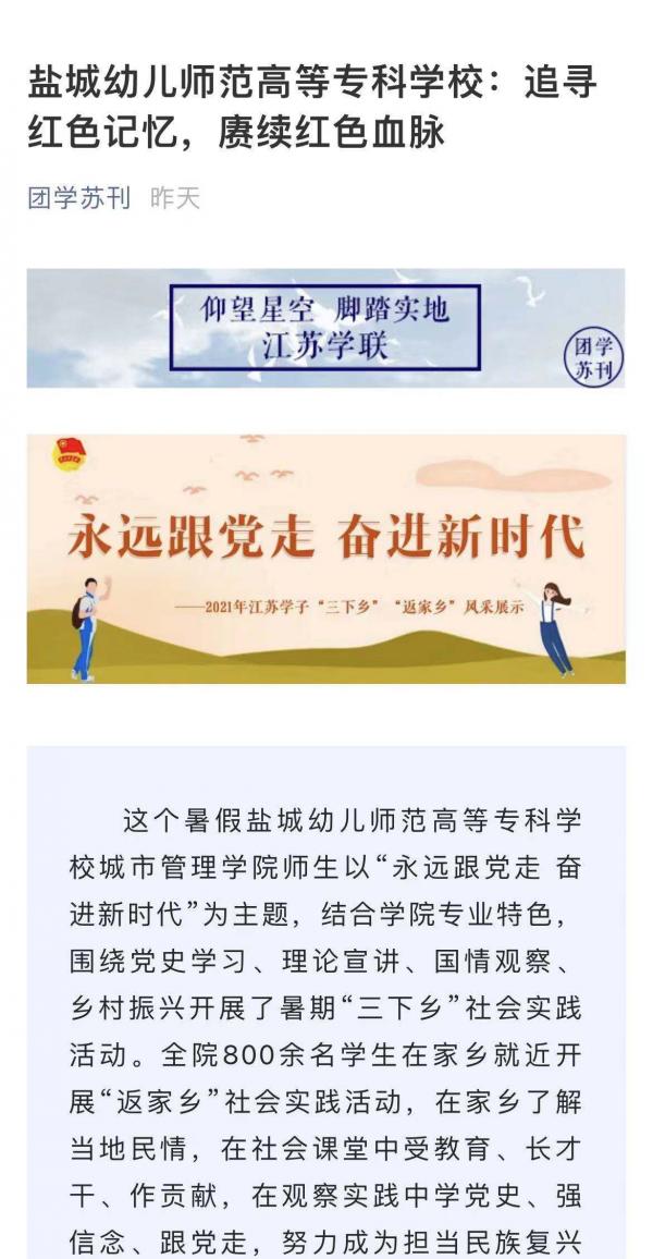 团学苏刊:盐城幼专追寻红色记忆,赓续红色血脉