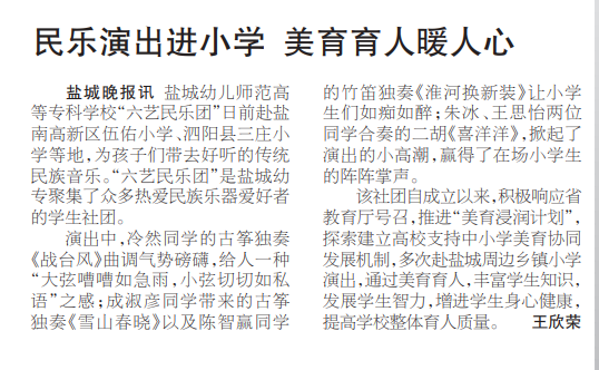 盐城晚报:民乐演出进小学 美育育人暖人心